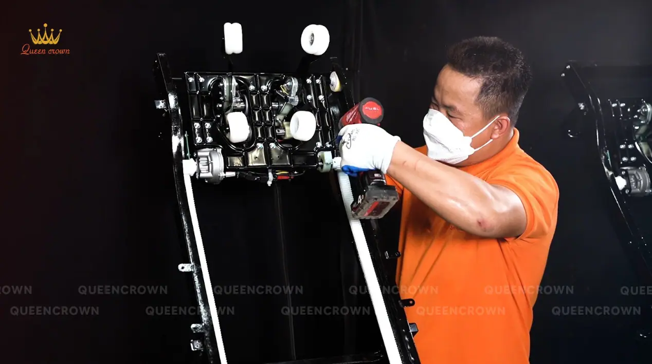 - Kỹ thuật viên của Queen Crown sẽ tiến hành kiểm tra toàn diện ghế massage, tập trung vào các bộ phận quan trọng liên quan đến chế độ không trọng lực như khung SL-Track, motor, cảm biến và hệ thống điều khiển.